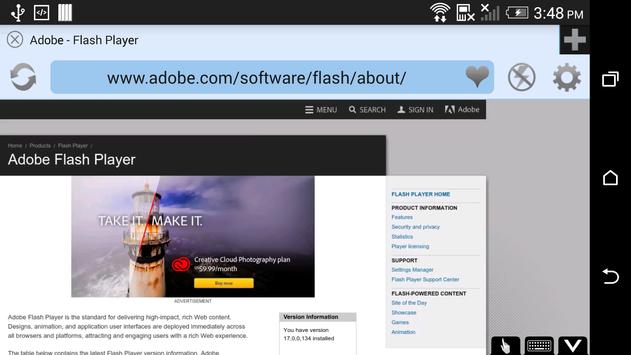 4) Access Adobe Flash player content found on websites. The Adobe Flash Player supported in this private browser allows you to access Flash videos, games and web content without downloading Flash plugin.