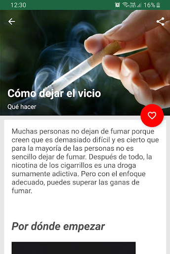 "Cómo Dejar de Fumar" te brinda toda la información que necesitas para que aprendas cómo dejar el cigarrillo, ya sea que quieras hacerlo paulatinamente o de forma rápida.