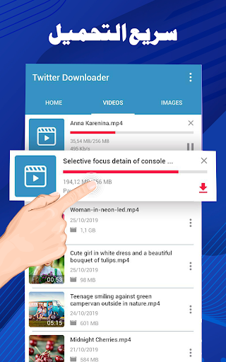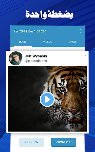 يساعدك Video Downloader for Twitter على تنزيل مقاطع فيديو Twitter و gif التي تحبها على جهازك بسرعة كبيرة.