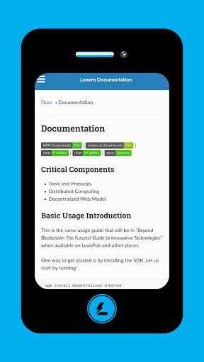 This is the android app that allows you to look at the mobile view/read the decentralized internet documentation for Lonero's SDK.