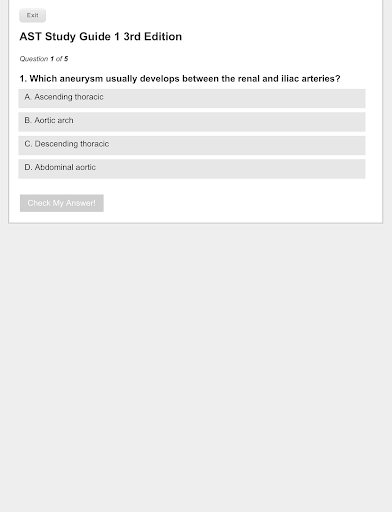 يعد تطبيق دليل الدراسة AST هذا هو دليل الدراسة المعتمد في AST فقط لفحص التقييم الجراحي الوطني.تم بناء امتحانات الممارسة هذه لتمثيل الخطوط العريضة لمحتوى الامتحانات الوطنية وتتضمن أسئلة مكتوبة من قبل علمي التقني الجراحي.