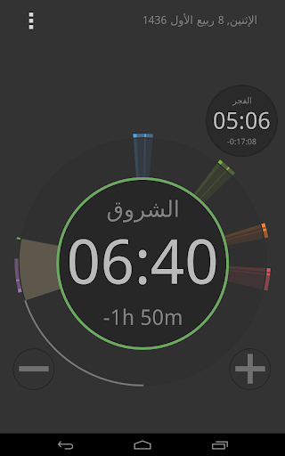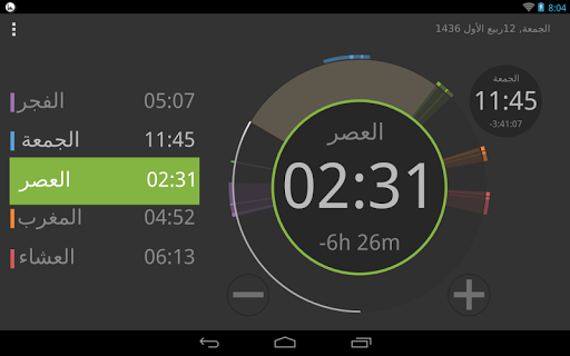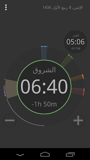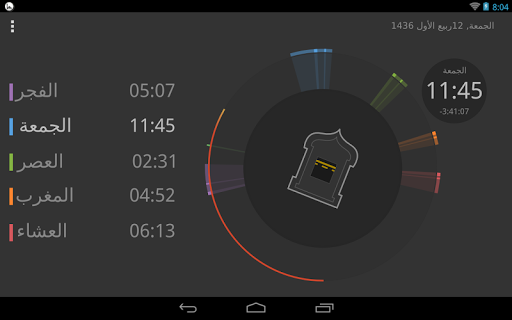 يتم عرض مواقيت الصلاة في هذا التطبيق بطريقة مبتكرة لتسهل على المستخدم معرفة المعلومة التي يريد في أقصر وقت بدون تشتيت انتباهه بما لا يحتاج إليه. بحيث يستطيع معرفة ما هو وقت الصلاة المقبل وكم بقي على الأذان في لمحة، وإذا حان وقت الصلاة يعرف كم مضى منذ بدء الأذان ويمكنه أن يعرف وقت أي صلاة وكم بقي لها بلمسة واحدة.