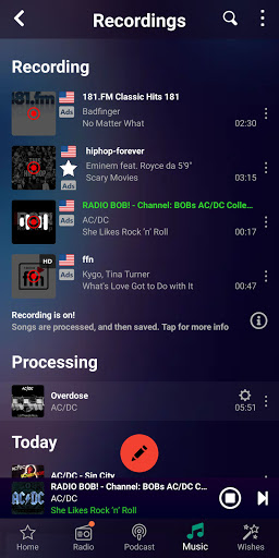 فقط انقر فوق الزر "تسجيل" لتوفير الموسيقى التي تلعبها راديو الويب. من خلال التاريخ، يمكنك تشغيل أغانيك المفضلة في أي وقت مرارا وتكرارا.