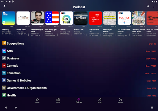 من الأخبار والأفلام الوثائقية والشؤون الجارية إلى دورات اللغة، التكنولوجيا الاستعراضات والكوميديا، تغطي Audial مجموعة واسعة من الترفيه مع الآلاف من البودكاست.