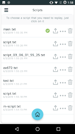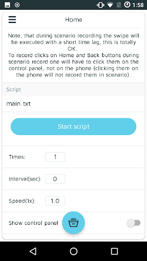 سوف يعيش التطبيق تسجيل المسرحية وجميع سيتم محاكاة إجراءات المستخدم وفقا للسيناريو المسجل. علاوة على ذلك، يمكنك حفظ السيناريو ومشاركتها مع الأجهزة الأخرى، مما يوفر لك الكثير من الوقت والجهود، خاصة عندما يتعلق الأمر برصصيات طويلة وعدة.