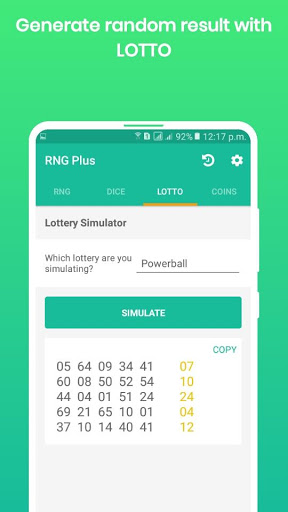 Feeling lucky? Then let's simulate a lottery or two! Generate 5 random lottery tickets/results with the click of a button. You can choose from simulating the Powerball or Mega Millions. Oh yeah, you can also copy the results to your clipboard with a simple click like with any Random Number Generator feature.