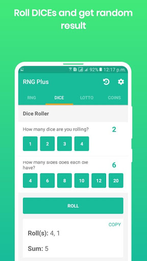 I don't know about you, but rolling dice in games is annoying sometimes. They're loud and they end up all over the place. This is why Random Number Generator also has a dice-rolling mode where you can roll as many dice you want with whatever amount of sides you want. Random Number Generator also gives you the sum of the rolled dice and allows you to copy the results to your clipboard. To save you time, the app provides "quick options" for common amounts of dice sides and dice amounts so you can quickly roll dice for popular games like Dungeons & Dragons.