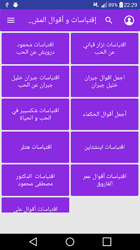 تطبيق شيق ممتع رائع ينقل لكم اشهر المقوﻻت واﻻقتباسات على لسان المشاهير والشخصيات التي تركت بصمة في حياتها ومماتها اقسام كثيرة منها