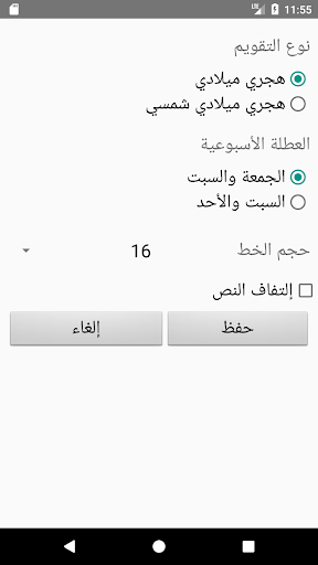 التقويم يغطي عام 1420 ~ 1450 هـ فقط. البرنامج مجاني، بدون إعلانات، بدون الإتصال بالإنترنت. يمكن إضافة التقويم الشمسي أو تغيير حجم الكتابة أو إمكانية إلتفاف النص أو تغيير العطلة الإسبوعية من خلال إعدادات البرنامج.