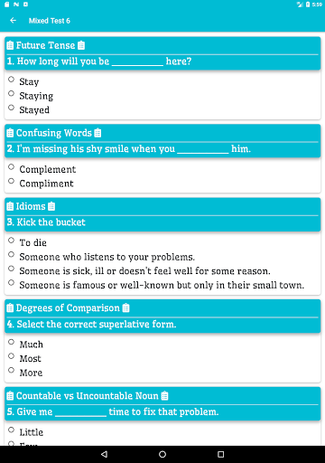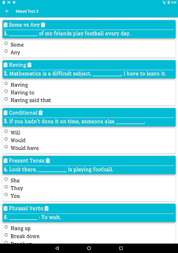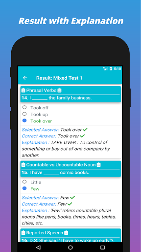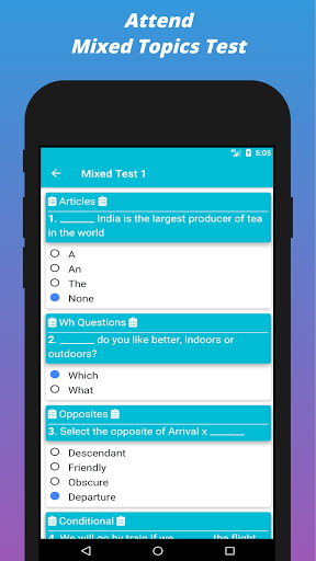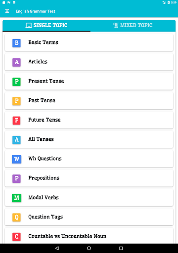 يستخدم هذا التطبيق لاختبار المهارة الإنجليزية. يمكنك تقييم قواعد اللغة الخاصة بك وممارسة امتحان اللغة الإنجليزية.