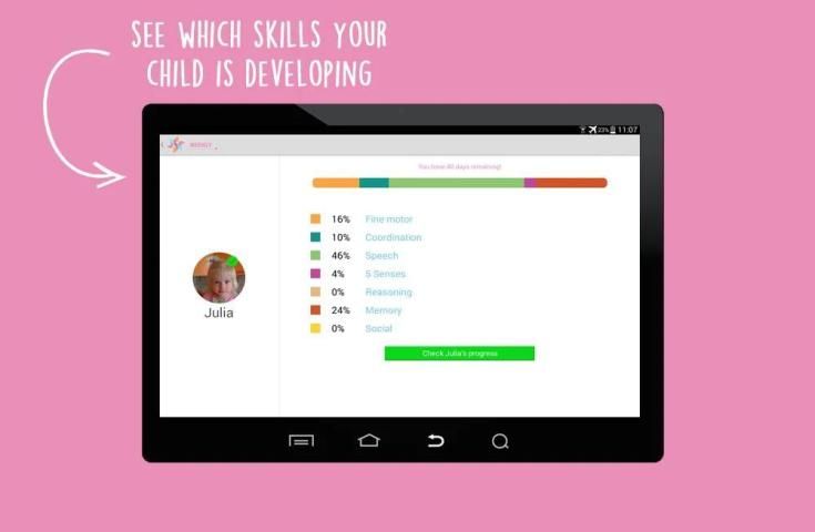 7 key learning and development skills are supported by the baby learning games and tracked automatically for mothers to see their child’s progress! Underpinned by the Early Years Foundation (EYFS) the skills taught are: