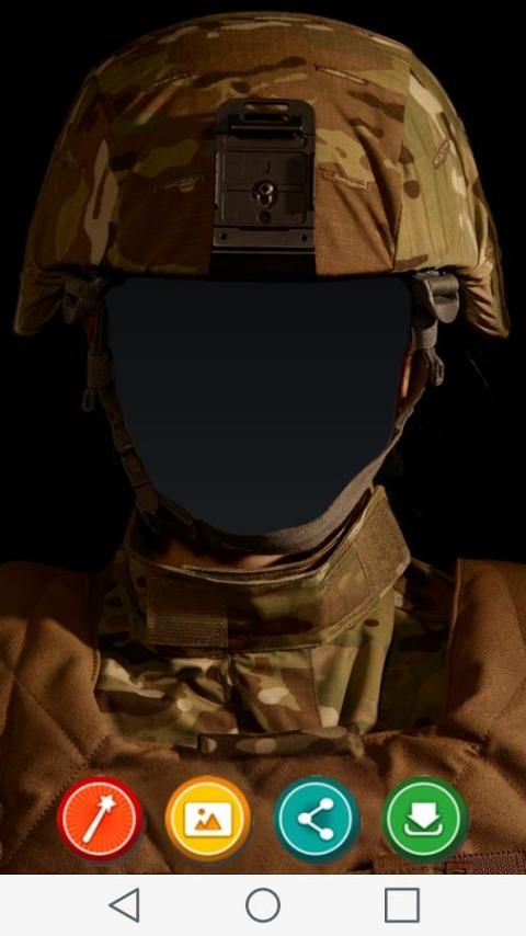 الجيش محرر دعوى الصورة هو حقا سهلة الاستخدام. مجرد التقاط صورة وجهك واختيار الزي جيش واحد من ملابسنا الجيش اللباس صورة التطبيق. ضبط الصورة بحيث يناسب وجهك داخل الجيش دعوى الصورة، وضع وجهك في حفرة، وسيكون لديك العلامة التجارية الجديدة نظرة. الجيش محرر دعوى الصور يتيح لك فرصة مذهلة أن ترى نفسك كما المحارب الشجاع. بمجرد الانتهاء من ذلك مع المونتاج دعوى صورة الجيش، يمكنك حفظ الصورة واستخدامها على الهاتف بوصفها خلفية أو خلفية. وعلاوة على ذلك، لا تبقي لكم الكوماندوز الدعاوى صورة لنفسك، مشاركتها في ملامح الشبكة الاجتماعية، لجميع دول العالم لنرى. تجهيز الهاتف أو الجهاز اللوحي مع هذا المونتاج الصورة عسكري وسيكون لديك ترسانة من الصور ملحمة يضم لك وأصدقائك كما القوات الخاصة. تثبيت هذا التطبيق المجاني الآن، لأن الجهاز يستحق وجه ملحمة في كشك حفرة الصور مثل محرر البدلة جيش صور.