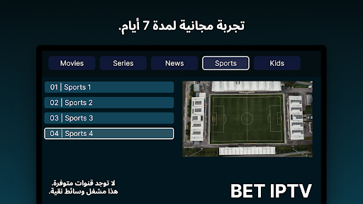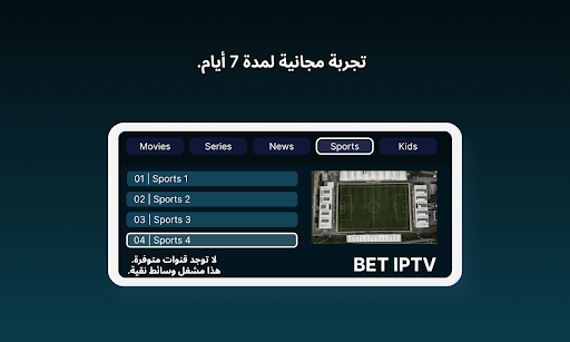 هل ترغب في معرفة ما يقدمه BET IPTV؟ جربه بدون مخاطر مع تجربتنا المجانية الكريمة لمدة 7 أيام. سجل واحصل على وصول إلى مجموعة واسعة من القنوات والمحتوى، كل ذلك دون تكلفة. استكشف التطبيق، اكتشف عروضًا جديدة واكتشف بنفسك لماذا يعتبر BET IPTV الخيار المفضل لبث IPTV.