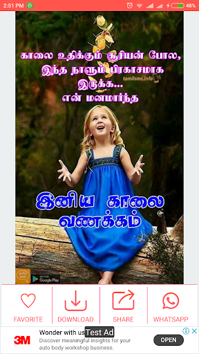 App filled with Good Morning, Good Evening and Good Night images and GIF in Tamil App Features more than 3000 images/GIF
