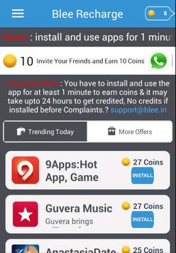 Blee Recharge helps you to get free recharge for completing simple tasks like installing free apps,completing simple registrations etc