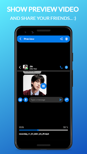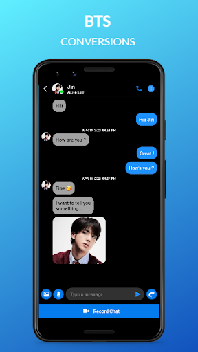 - إنشاء فيديو من هذا التطبيق ومزجع أصدقائك عن طريق إظهارهم دردشة مع عضو BTS.