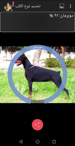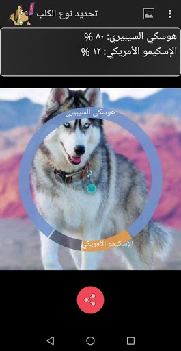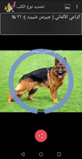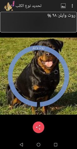 قم بتصوير الكلب حيث ضع صورته داخل الدائرة، ثم اضغط على الزر الأسفل ليقوم بألتقاط النتيجة وأعطائك النتيجة الفورية لنوع الكلب.