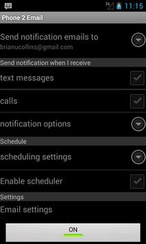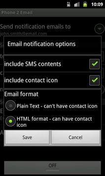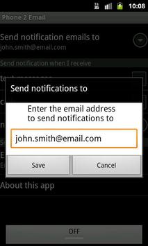 - Sends a notification email to the specified address whenever you receive a new text message or phone call