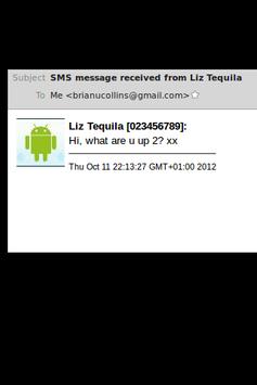 The app will send a notification email to the address that you specify whenever you receive a new text message or phone call. You can choose whether or not to include the contents of the received text messages - which is useful if you don't want to have your work email storing the contents of personal messages.