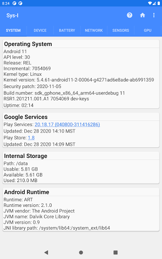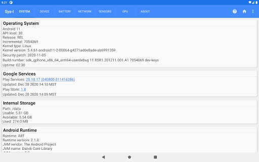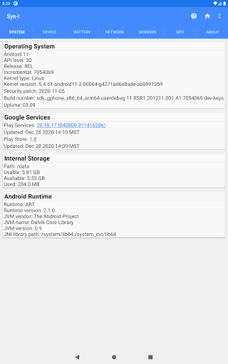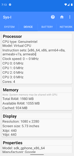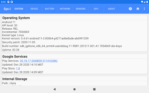 SYS-I يوفر معلومات مفصلة عن أجهزة وبرامج جهاز Android الخاص بك.