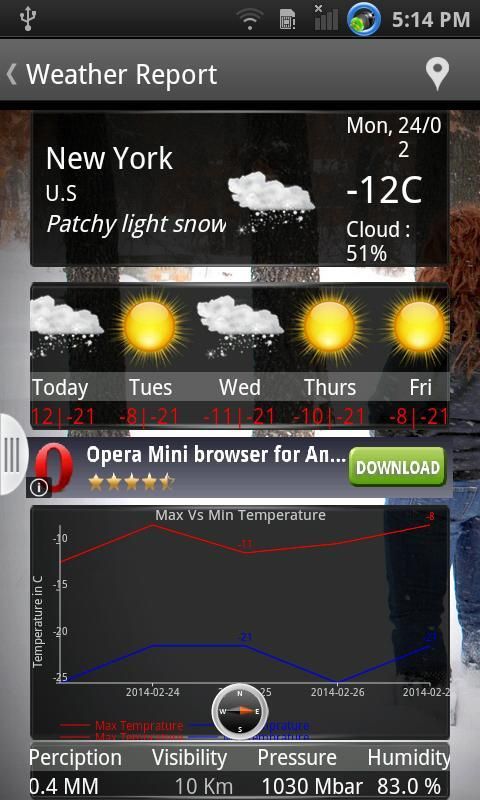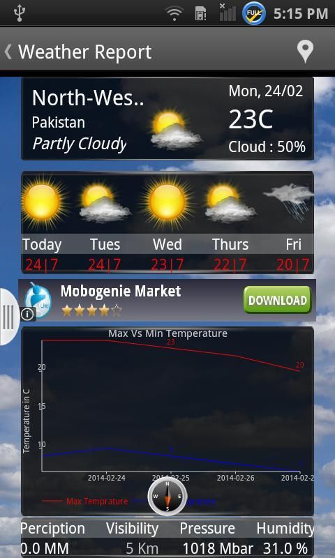 Do you want to know the coming weather?? whether coming days will be cloudy?? or raining?? or snow?? or a nice sunny day?? now get all the reading of weather for coming days all freely. this app will give you the most accurate weather reading for next days. it also gives all the weather parameters, raining percentage, perciption, visibility , wind direction and speed. Just select your location or let us detect your location and you will get all the information of weather you need.
