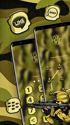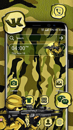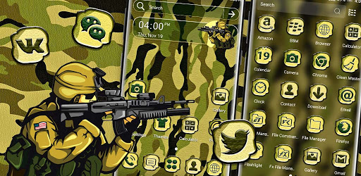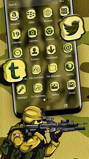 The smooth and simple crafted app icons and other visual elements of this Military Texture Launcher theme will change the way your smartphone looks. You can even use an awesome Army Suit Texture wallpaper for your phone, which will give your device a fantastic new look.