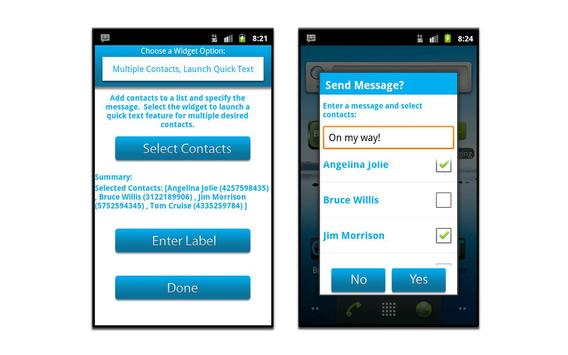 - Specify a list of contacts, and launch the quick text dialog on widget click