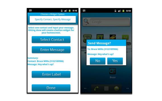 Create a widget and send a specific message, or launch a quick text dialog to send a message to your closest friends.