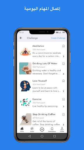 🎯 التحديات المستهدفة: اختر من بين التحديات الجاهزة أو قم بتخصيصها بتحديد أهدافك الخاصة. 21 يومًا من التحديات ستقربك خطوة بخطوة من أهدافك.