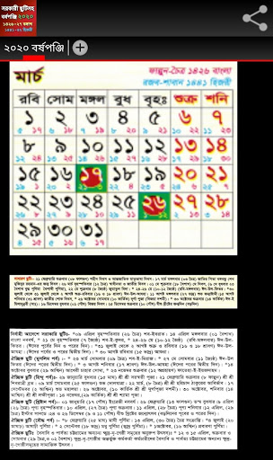 Bangla Calendar 2020 مع أيام العطل الحكومية. قم بتنزيل تقويم Bangla المجاني الذي يمثل تواريخ البنغالية باللغة الإنجليزية و Arbic جميعا مع جميع العطلات الوطنية والدينية. يمكن أن يكون هذا التطبيق التقويم البنغالي هذا دون أي إنترنت بعد التنزيل. استخدم هذا Bangla Ponjika حاليا في أي وقت.