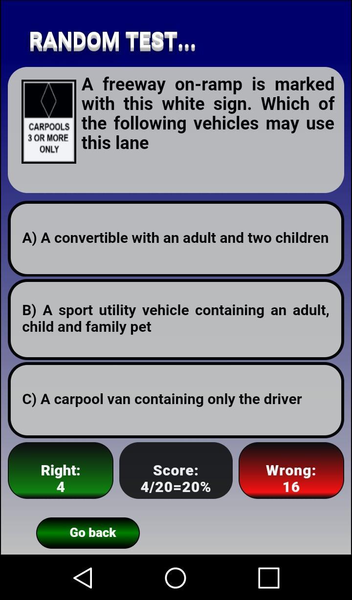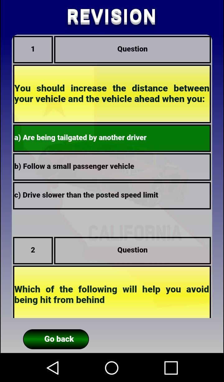In the test section to go to the results section, you must fill in the 36 questions of each test, if you press the option "Go Back", you would go to the section of type of test.