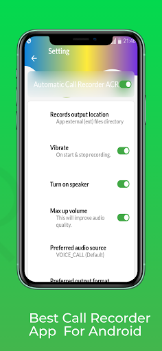 أفضل مسجل مكالمات هاتفية لنظام الاندرويد. مسجل المكالمات التلقائي ، يمكنك تسجيل جميع المكالمات الواردة والصادرة بجودة عالية. تسجيل المكالمات تلقائي وموثوق للغاية. مسجل المكالمات سهل الاستخدام للغاية. هناك العديد من الوظائف لتسجيل المكالمات ، كل ما تحتاجه هو تطبيق تسجيل المكالمات هذا. لا تريد أن تفوت تفاصيل المحادثة؟ سجل المكالمات الهاتفية الواردة والصادرة المهمة باستخدام مسجل المكالمات التلقائي! لا يعمل مسجل المكالمات التلقائي على بعض الهواتف وقد يؤدي إلى جودة التسجيلات الرديئة. إذا كنت تواجه مشكلة في التسجيل أو ترغب في تحسين جودة الصوت ، فحاول التسجيل من مصدر صوت آخر أو استخدم وضع مكبر الصوت التلقائي. سواء أكنت تجري مقابلة مع شخص ما بخصوص قصة قادمة أو تستغرق بضع دقائق لإجراء مكالمة جماعية كبيرة ، فقد تحتاج إلى تسجيل محادثة. يسمح لك مسجل المكالمات التلقائي بتسجيل أي مكالمة هاتفية بأمان.