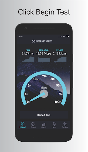 " Internet speed test " helps you to discover your internet downloading speed uploading speed and ping easily.