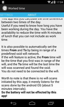 It is also possible to automatically set the worked times by being in range of a predefined ssid wifi network.
