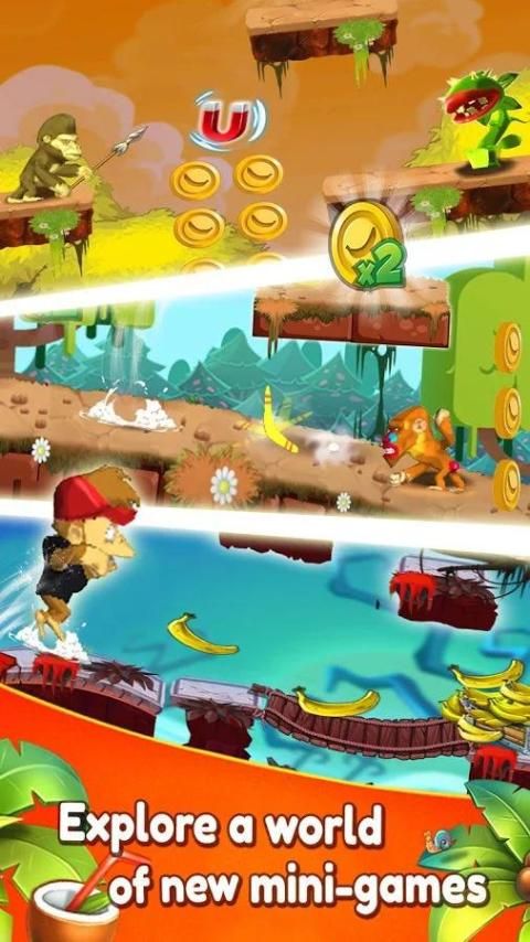 تاريخ الغابة قرد تشغيل السعي لتجربة منصة الألعاب الأكثر جنونية على الاطلاق في منهاج 2D! إظهار أنك مغامر حقيقي، واندفاعة من خلال الغاب في هذا الموز لعبة الهوس قرد رهيبة! معركة الغوريلا الشر كينغ كونغ، تغلب على جميع أتباعه البابون، والذهاب على الموز جمع مهمة ليكون البطل من اليوم!