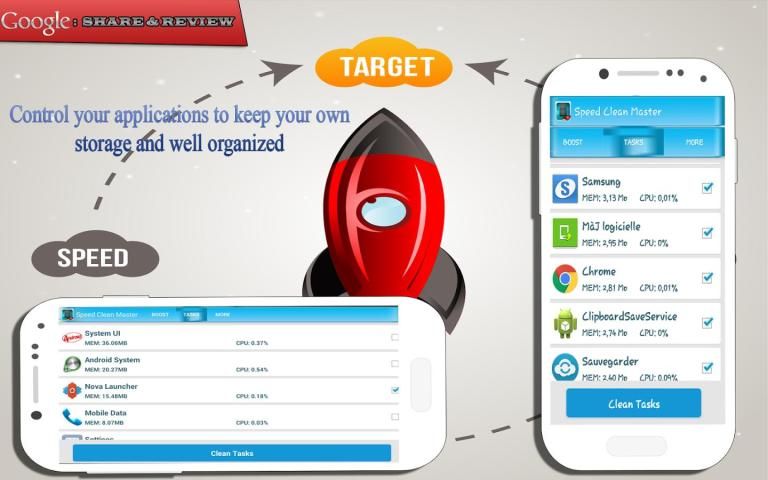 Speed RAM Clean Master goes through your phone and cleans the memory cache of your system, which increases the performance of your phone or tablet, and improving your battery life, boost and Internet speed test. It's completely free!