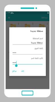 يدعم البرنامج اضافة عدد لانهائي من المحافظ حسب احتياحاتك ، فيمكنك تخصيص محفظة لصورك الخاصة والفيديوها الخاصة وكذلك الملاحظات المهمة.