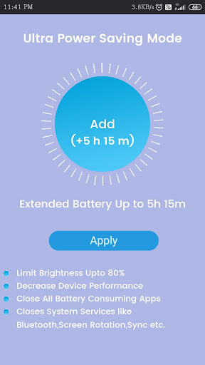 The battery saver can analyze battery usage and monitor all apps that drain power while not in use. Hibernating the apps to stop battery draining and promote battery life.