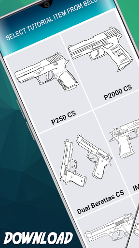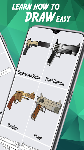 ✏️ All weapons drawing lessons are free. Install the application, select the pistol you like and draw.