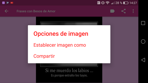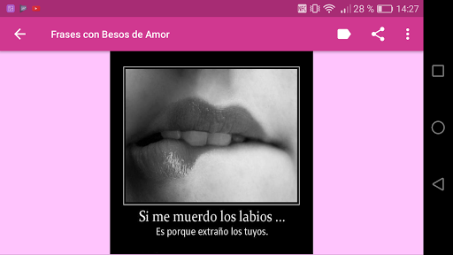 Descarga ya mismo esta App "Frases con Besos de Amor" y disfruta enviando fotos con frases de amor cortas, demuestra lo enamorad@ que estás, la persona a la que va dirigido sabrá valorar estas frases e imagenes de besos de amor.