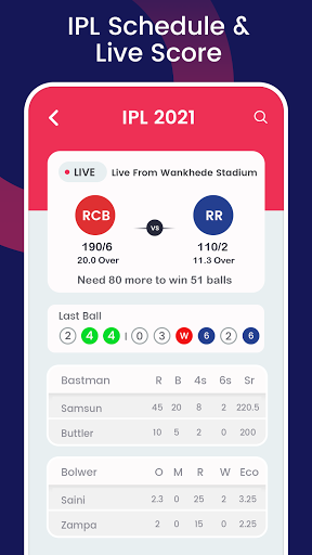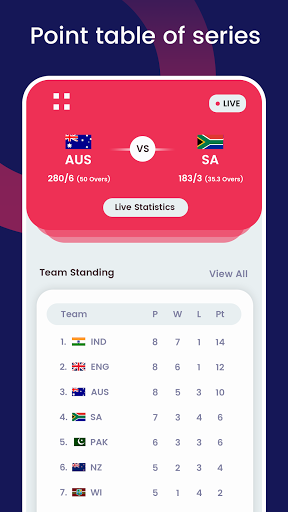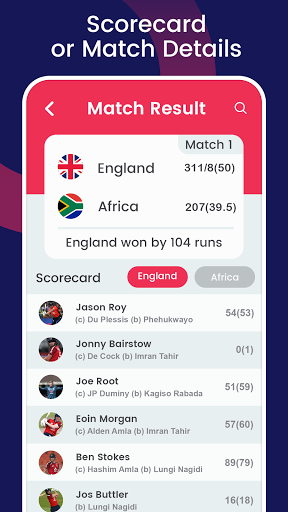 الجدول الزمني: يحتوي التطبيق على شركة واحدة مجيدة عرض ليشى يضم مباريات حية وقادمة ومجهولة. يظهر ملخصا سريعا سريعا لجميع أفضل الأشياء من عالم الكريكيت خلال يوم واحد للمباريات وشهر للسلسلة.