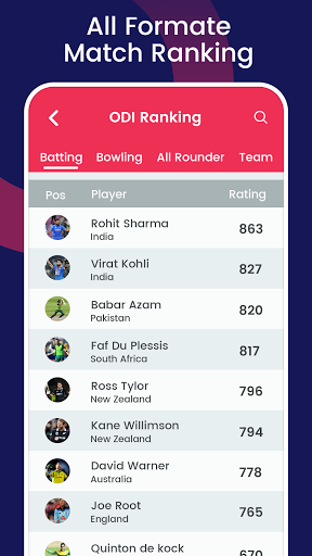 المسابقات: يوفر التطبيق كل ما تحتاج لمعرفته حول مسابقات الرجال والكريكيت النسائية بما في ذلك التجهيزات والنتائج والترتيب وغير ذلك الكثير.