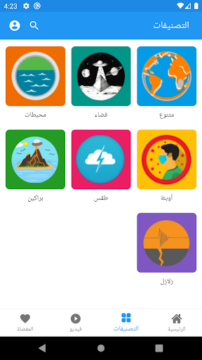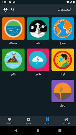 يوجد العديد من التصنيفات داخل البرنامج مثل أخبار الزلازل والبراكين والطقس والفضاء والبحار والمحيطات الى جانب اخبار متنوعة مثل اخبار الحيوانات والحشرات وغيرها... .