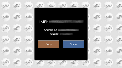 This app will display the IMEI number of your mobile device. At the same time, it will also display the serial number as well as the Android ID of your device. You can also share these information to other apps by clicking the share button. You can also just copy these information to the clipboard only.