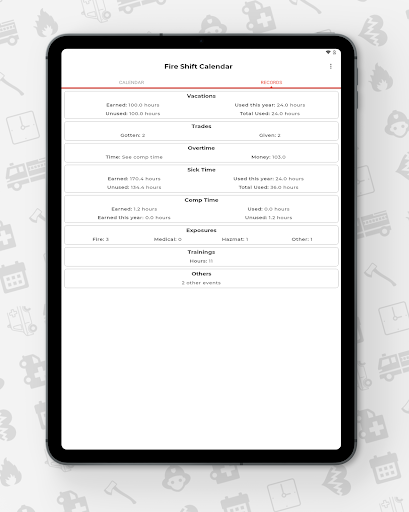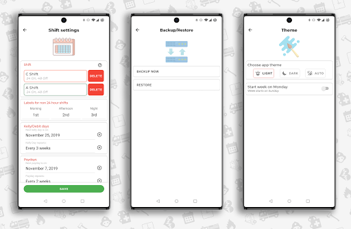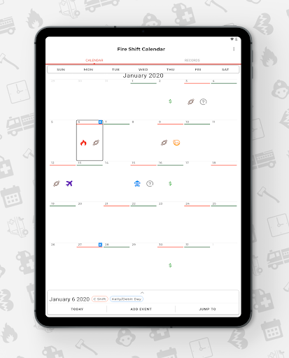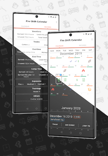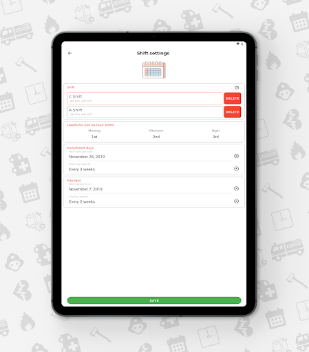 Fire Shift Calendar يتيح لك إنشاء نمط التحول الخاص بك، بالإضافة إلى أيام كيلي لسهولة تتبع بطريقة بسيطة ولكنها جميلة.
