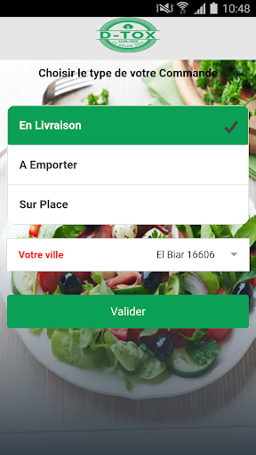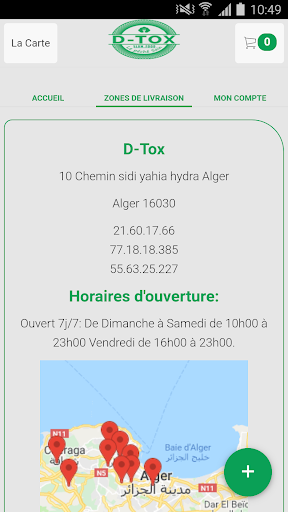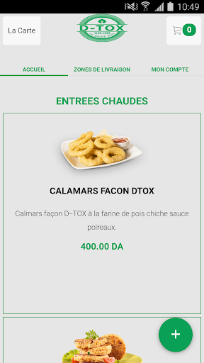 L'application Android D-Tox vous permet de commander en ligne ou par téléphone via votre application. Vous pouvez consulter notre carte et choisir vos produits.