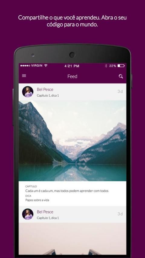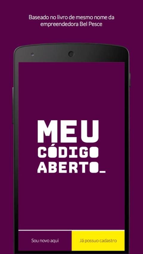 O aplicativo "Meu Código Aberto", baseado no livro de mesmo nome da empreendedora Bel Pesce, desafia todos a se conhecerem melhor e a compartilharem seus conhecimentos com o mundo. Por meio deste aplicativo, você pode escolher os desafios que deseja cumprir, fazer suas anotações, desenvolver suas habilidades comportamentais e, ainda, compartilhar com os outros usuários o que você aprendeu. Faça parte deste movimento de compartilhamento e abra o seu código para o mundo.