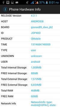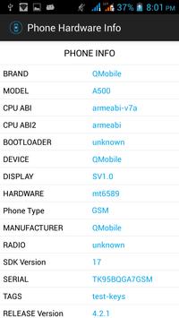 Provides information about the your Android device hardware capabilities. Data is presented in a simple and easy to read fashion. Including: -- System -- Display -- Processor -- Memory -- Graphics -- Network -- SIM