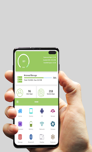 Device Manager is a small, fast, and totally free Android device. My Device info is a powerful yet simple app that lets you know all the essential details about your phone. This detail specifications includes information of CPU, RAM, Storage, OS, Sensors, Core, Partition, Battery, Data Network, Wi-Fi, SIM, Camera, Bluetooth, Display, Supported features, Manufacturer, Installed Apps, System Apps.