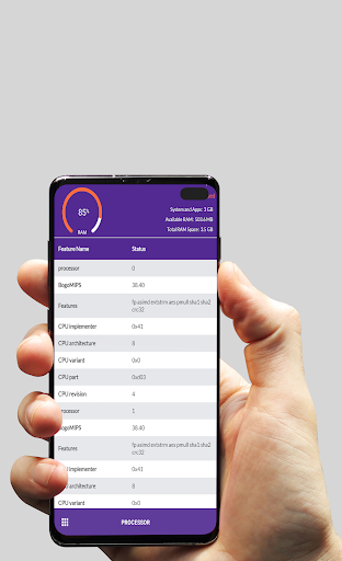 This app covers most of the information like Processor, CPU, RAM, Storage, Camera, Battery, Network, Wi-Fi, SIM, Bluetooth, Display, Screen resolution, GPS, NFC, USB, Sensor, Microphone, Root, Boot loader, CDMA, GSM, Fingerprint, VOIP, Audio & Video Support info, Camera Scene Modes, Camera frame & Resolution, orientation, Bloat ware, Default apps, System app, User installed apps, Mac address, SSID, Link speed, IP address, OTG device info, Battery voltage, Battery health, Battery type, OS version, Board, Manufacturer, Model number.